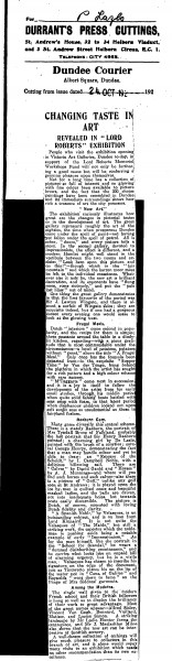 Dundee Courier. De László exhibits a portrait of a "charming girl" [6807] at the Victoria Art Galleries, Dundee in support of the Lord Roberts Memorial Workshops Fund