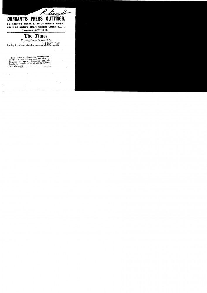 The Times. Queen Marie of Romania, the Infante Alfonso and Infanta Beatrice of Spain visited de László's studio on Thursday afternoon