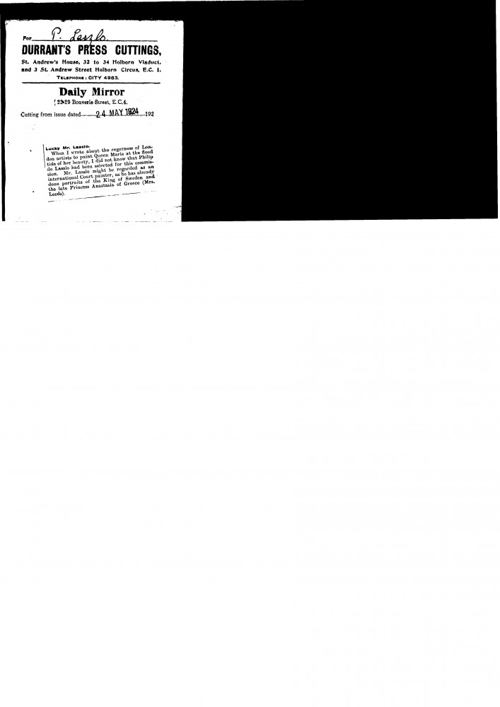 Daily Mirror. De László has been selected from the eager London artists keen to paint Queen Marie's portrait [3200]