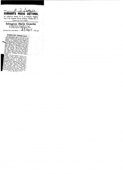 Islington Daily Gazette. The winner of the first prize at the Empire Ball's pageant costume competition will be painted by de László [13294]