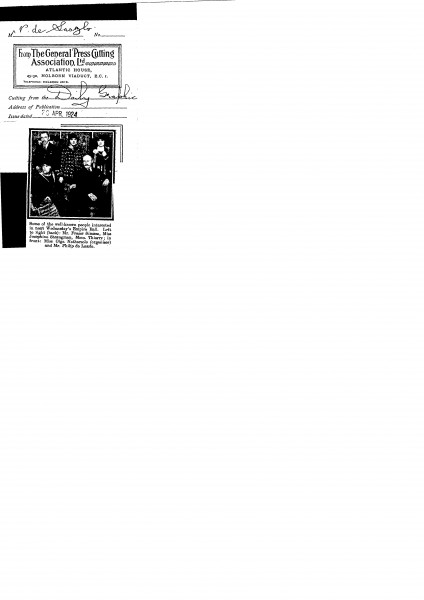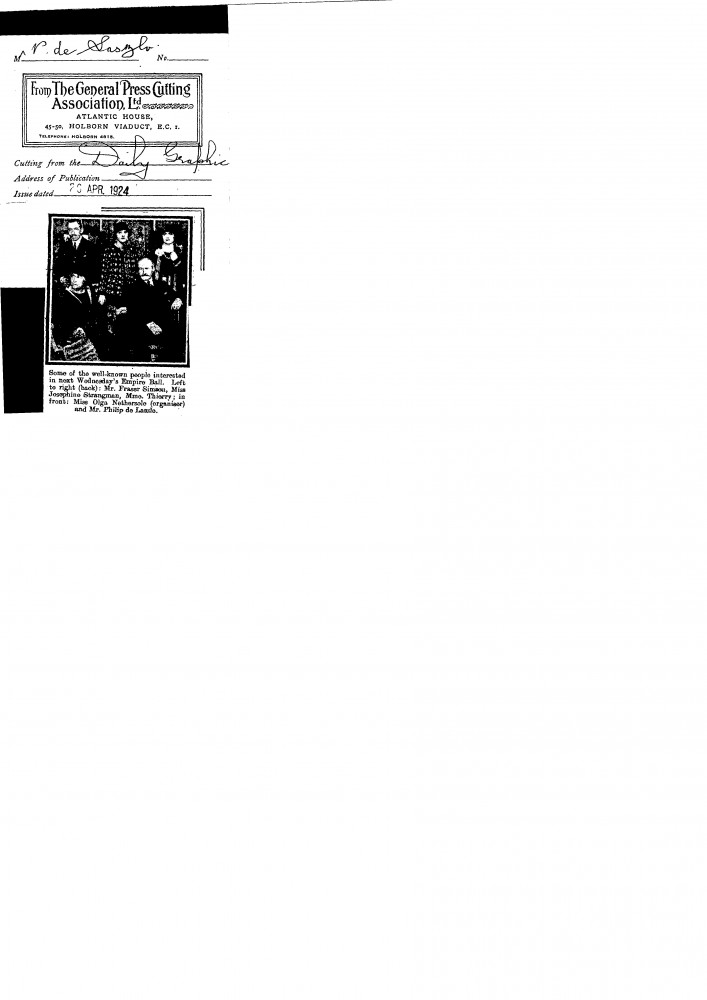 Daily Graphic. Photograph of "some of the well-known people interested in next Wednesday's Empire Ball", which includes de László (front row, right)