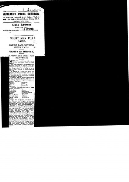 Daily Express. At the Empire Ball at Lord Leverhulme's home in Hampstead, de László is to paint the portrait of the guest who attends in a costume most representative of the Empire or of one of the Empire's great men or women (this item is a duplicate of DLA095-0062)