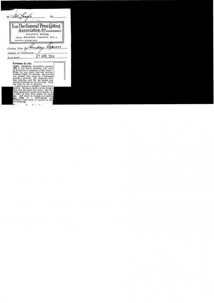 Sunday Express. Artists such as Ambrose McEvoy, de László, Augustus John and Lynn Jenkins can command higher prices in America than in England
