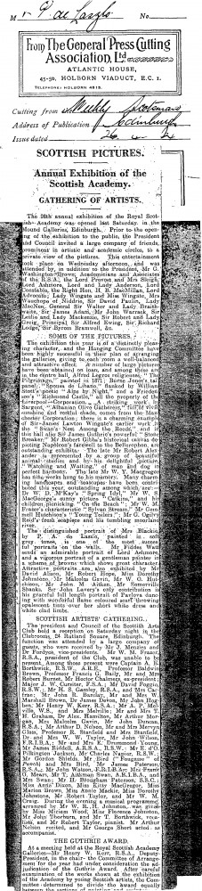 The Weekly Scotsman. De László's portrait of Mrs Blackie [13269], on view at the Scottish Academy's 1924 exhibition, is described as "one of the most successful portraits of the exhibition"