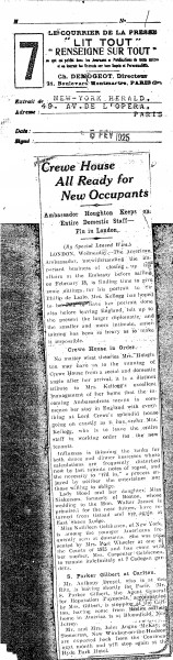 New York Herald. The American Ambassador, Frank Billings Kellogg, is sitting to de László [5917] before leaving Britain. Mrs Kellogg has not had time to sit for her portrait.
