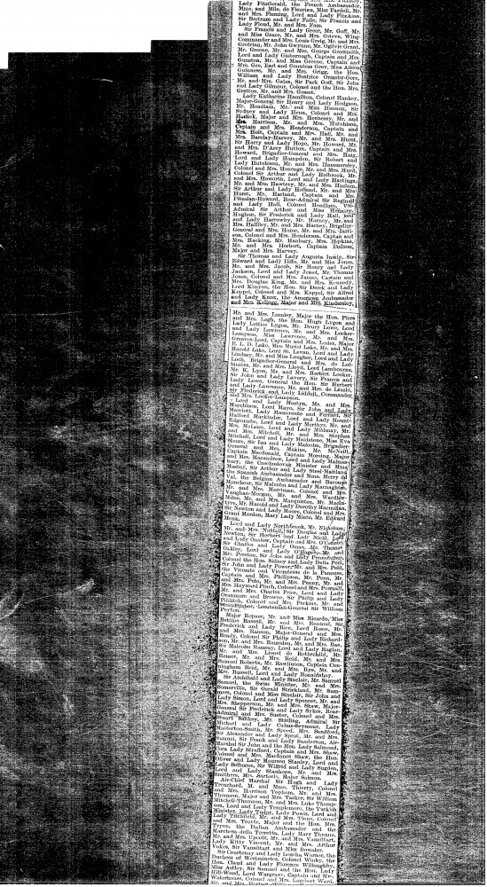 The Times. Lt.-Col. the Rt. Hon. Walter and Lady Evelyn Guinness gave a dinner party at their Grosvenor Place residence for the Prime Minister. The de Lászlós listed among the guests in attendance.
