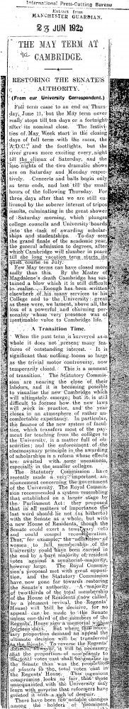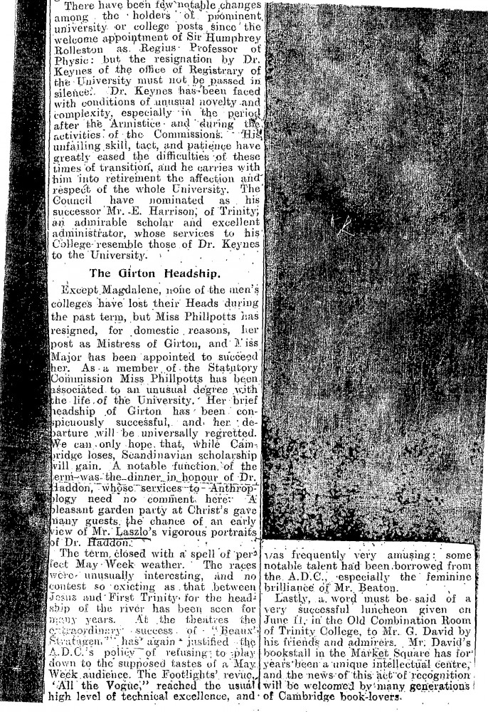 The Manchester Guardian. Dinner in honour of Dr Haddon. A garden party at Christ's College allowed guests the chance of an "early view" of de László's "vigorous portraits" of Haddon. DLA096-0072 is a duplicate of this item.