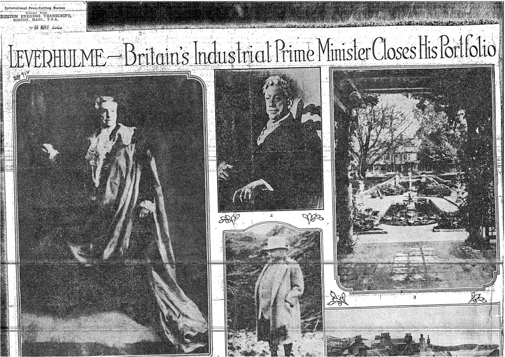Boston Evening Transcript. Photographs of Lord Leverhulme, his home and collection including de László's portrait of Lord Leverhulme [6043] and description of it as "the one he liked".