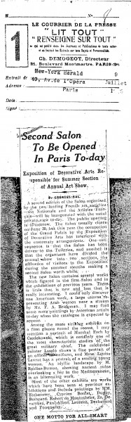 The New York Herald. Private view of the Salon, organised by the Nationale and the Artistes Français. De László exhibits "a fine portrait" of Count Michele Moroni, Colonel of the Guardia d’Onore Pontificia [6363].