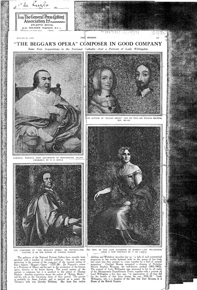 The Sphere. De László's portrait of Lady Willingdon [7755] illustrated alongside new acquisitions by the National Portrait Gallery.