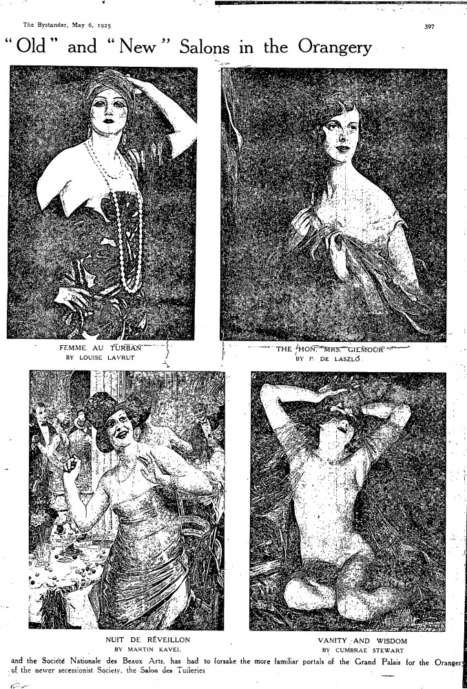 The Bystander. Illustration of de László's portrait of the Hon Mrs Gilmour [5331] on view at the Paris Salon (1925).