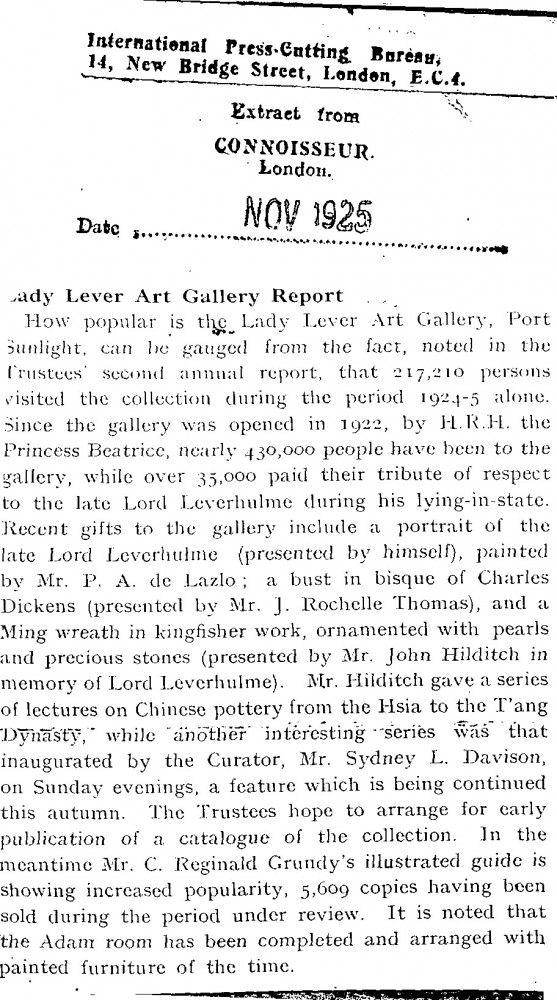 The Connoisseur. Recent gifts to the Lady Lever Art Gallery include de László's portrait of Lord Leverhulme [6043].