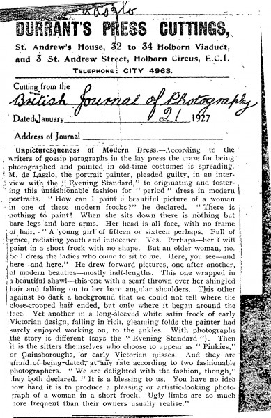 British Journal of Photography. De László "pleaded guilty" in an interview with the "Evening Standard" to originating and fostering the fashion for period dress in modern portraits. See related item DLA097-0108.