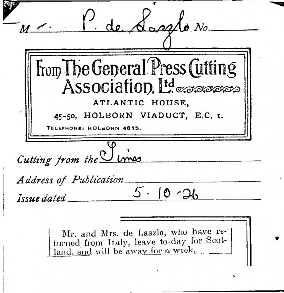 The Times. The de Lászlós have returned from Italy and leave today for Scotland for a week.