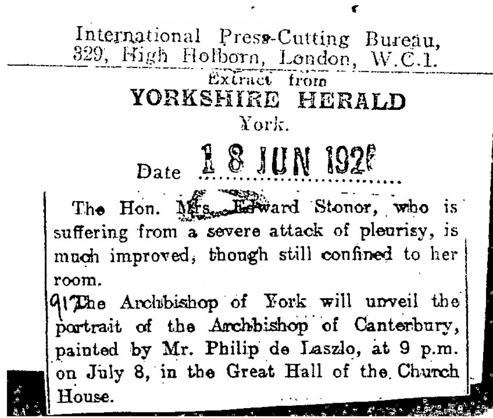 Yorkshire Herald. The Archbishop of York is to unveil de László's portrait of the Archbishop of Canterbury [4632] on 8 July in the Great Hall of the Church House.