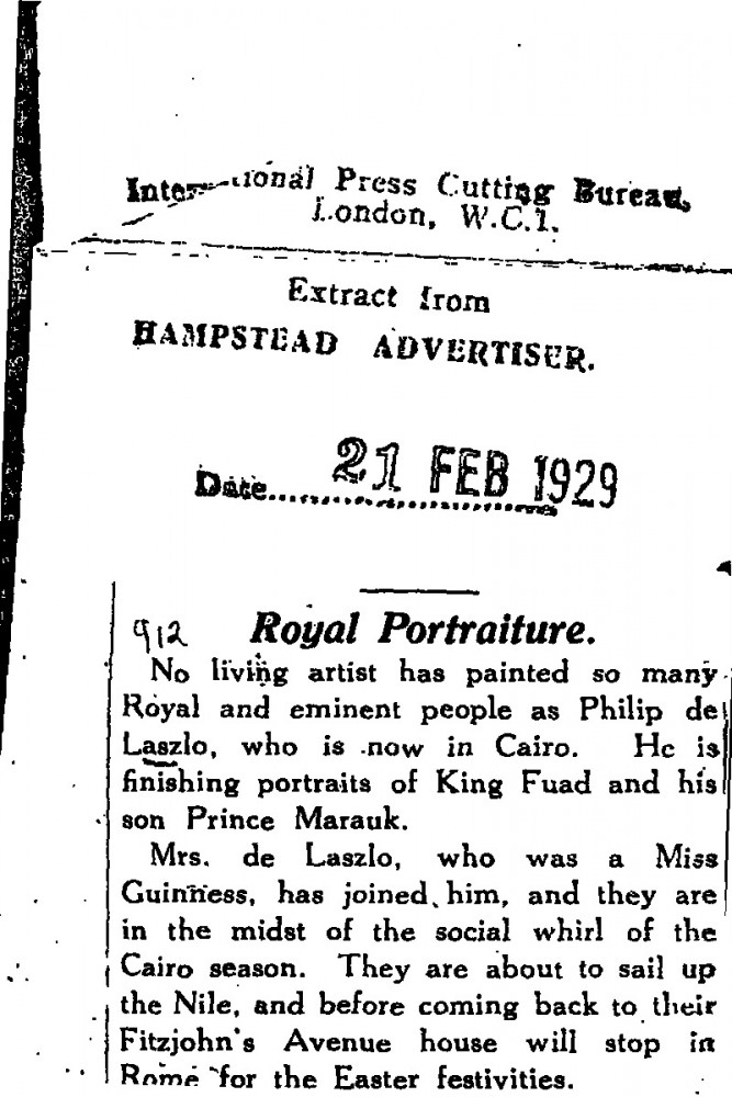 De László is in Cairo finishing portraits of King Fuad [4094][113256][110671][4099] and his son, Prince Farouk [4122]. Lucy has joined him. Travel plans.