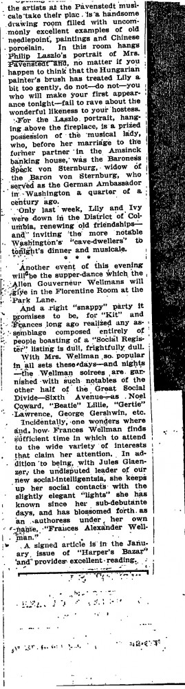 New York American. Above the fireplace in the drawingroom of Mrs. Adolf Pavenstedt's New York townhouse, hangs de László's portrait [111314], "a prized possession".