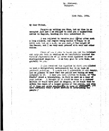 Siklóssy mentions the possibility of a Hungarian edition of "Painting a Portrait". Condolences on a death in the family. Plans to publish the artist's portrait of King Feisal [possibly 7886]. Letter continues as DLA035-0052.