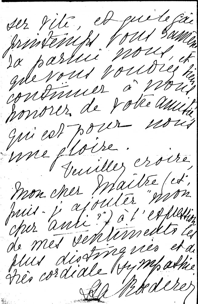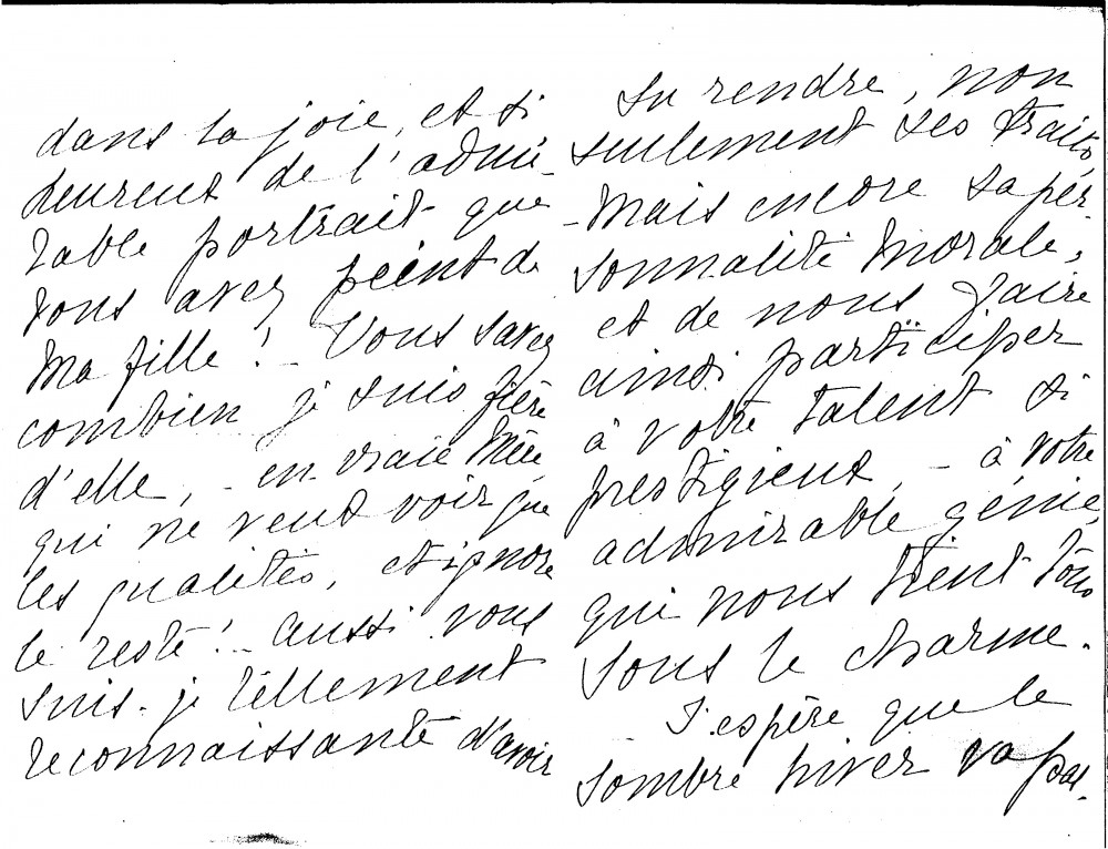 Letter from Comtesse Louise de Roederer praising de Laszlo's portrait of her daughter, Régine [9564]. "I am so grateful to you to have caught successfully not only her features but also her moral personality", she writes, "and to make us a part of your talent – so prestigious – and of your genius, which captivates us all"