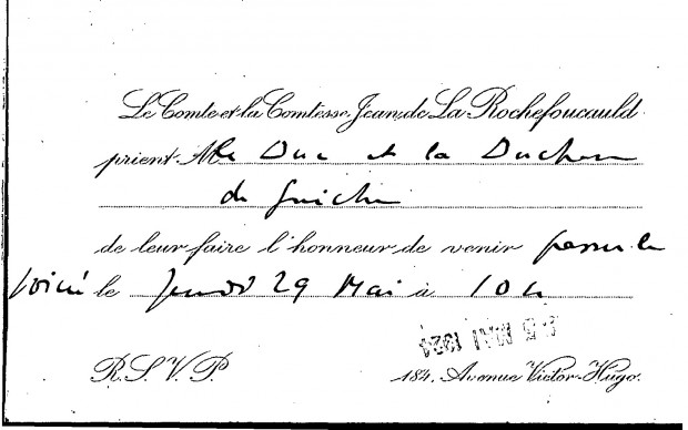 Invitation from the Comte and Comtesse Jean de la Rochefoucauld to the duc de Guiche and duchesse Gramont