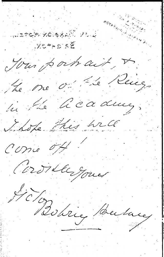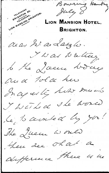 Letter from Victor Bowring-Hanbury to de László to say that he has written to Queen Mary of Teck about how he wishes she would be painted by de László. She would then see the difference between a de László portrait and the one of the King in the Academy (a reference to Charles Sims' portrait of George V that was then on view in the Royal Academy's summer exhibition)