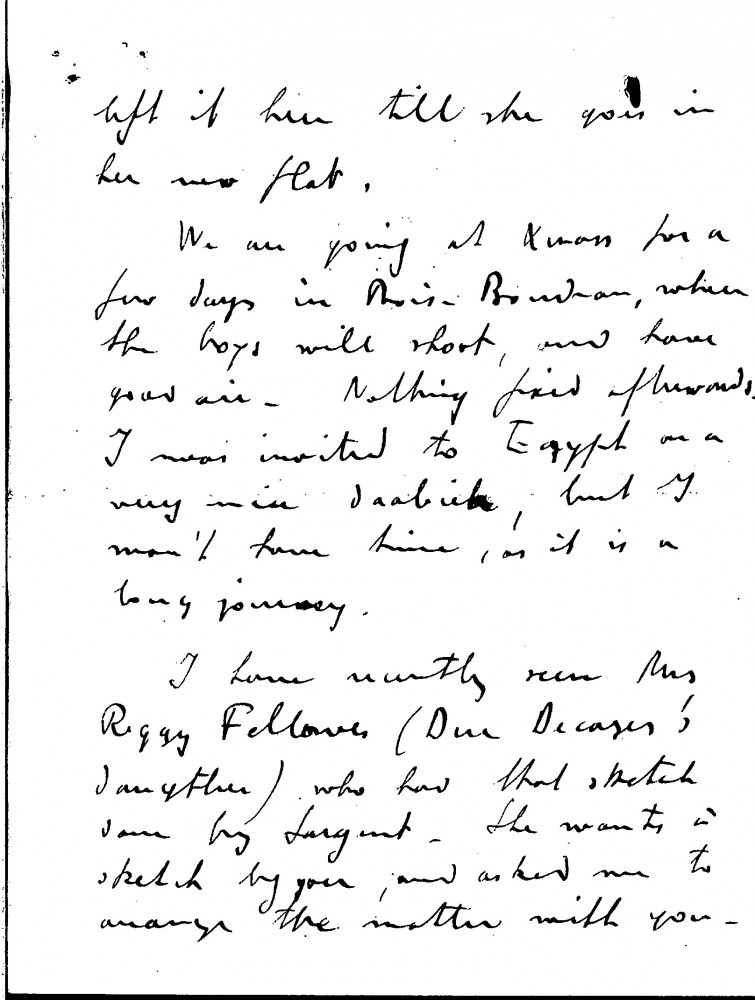 The duc de Guiche informs de László that of the pictures he completed in the avenue Henri Martin studio, the only remaining portrait is that of Pauline Leon, Marquise de Laborde [111005]. He is glad de László enjoyed such a successful time in Paris and only regrets that he was unable to "do anything in Versailles". The Hon. Daisy Fellowes, who had a sketch done by Sargent, would now like a sketch by de László and has asked the duc to arrange it (item was previously archived with DLA015-0075)
