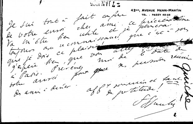 The duchesse de Gramont thanks de László for sending her a parcel containing porcelain, and she asks when he will arrive in Paris (item was previously archived with DLA015-0075)
