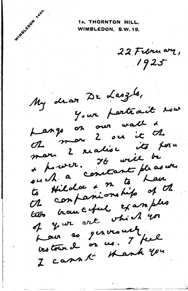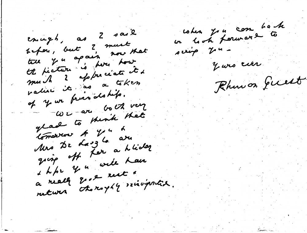 Arthur Rhuvon Guest thanks de László for the portrait [5403], which, along with that of his wife [5401], the artist "so generously bestowed" upon them