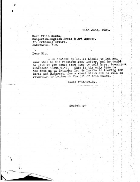 De László suggests that the Hungarian journalist Tibor Korda, who requested an interview, calls round tomorrow