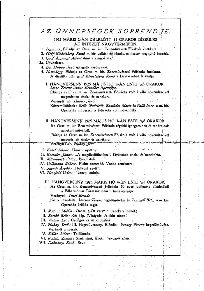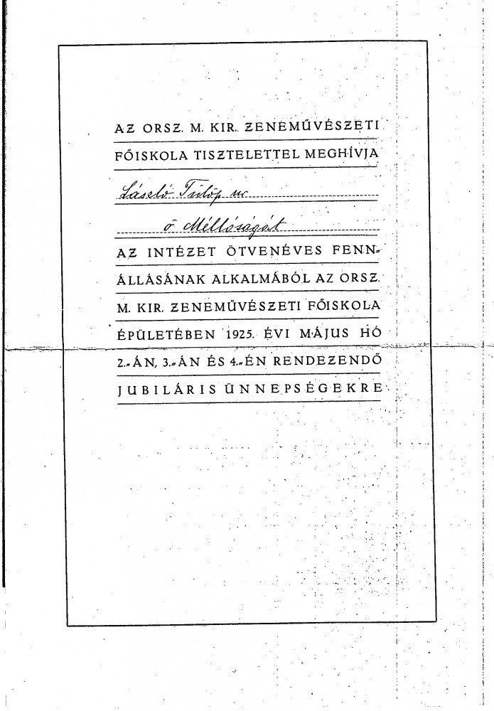 Invitation to the 50th anniversary celebration of the Academy of Music, with programme attached
