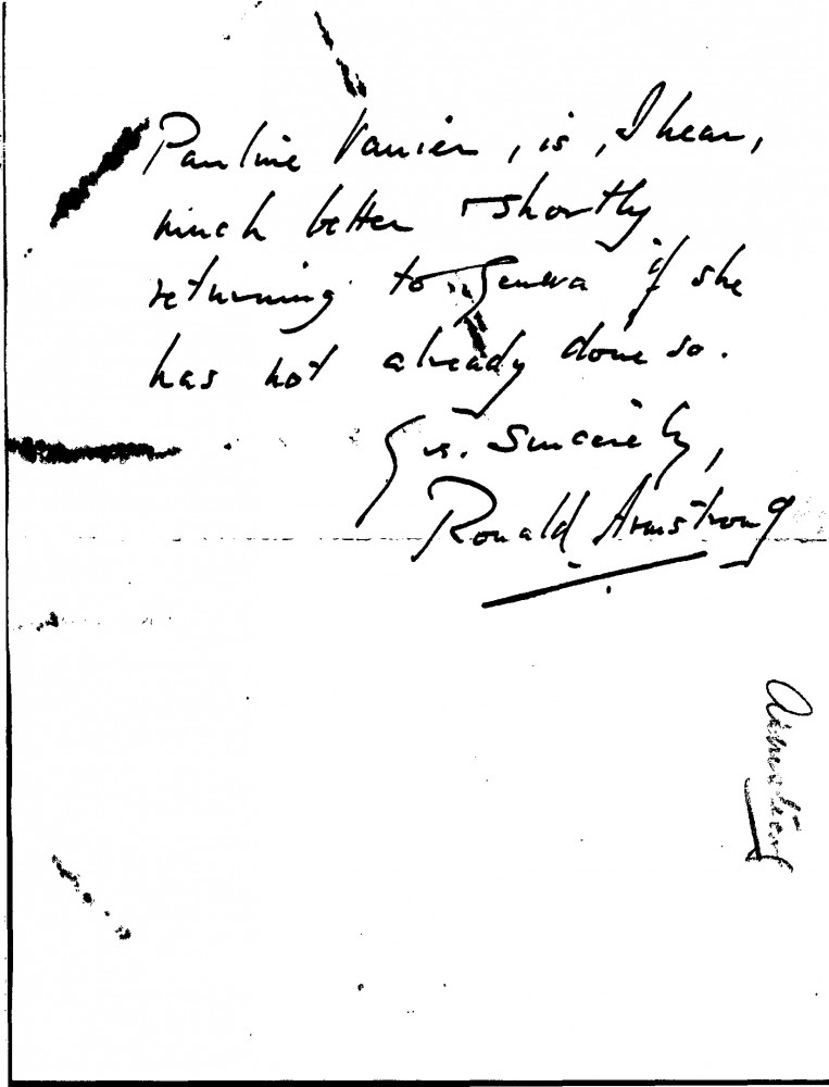 Ronald Armstrong admired de László's portrait of Count Apponyi, which he saw after the artist left Geneva; Pauline Vanier is feeling better