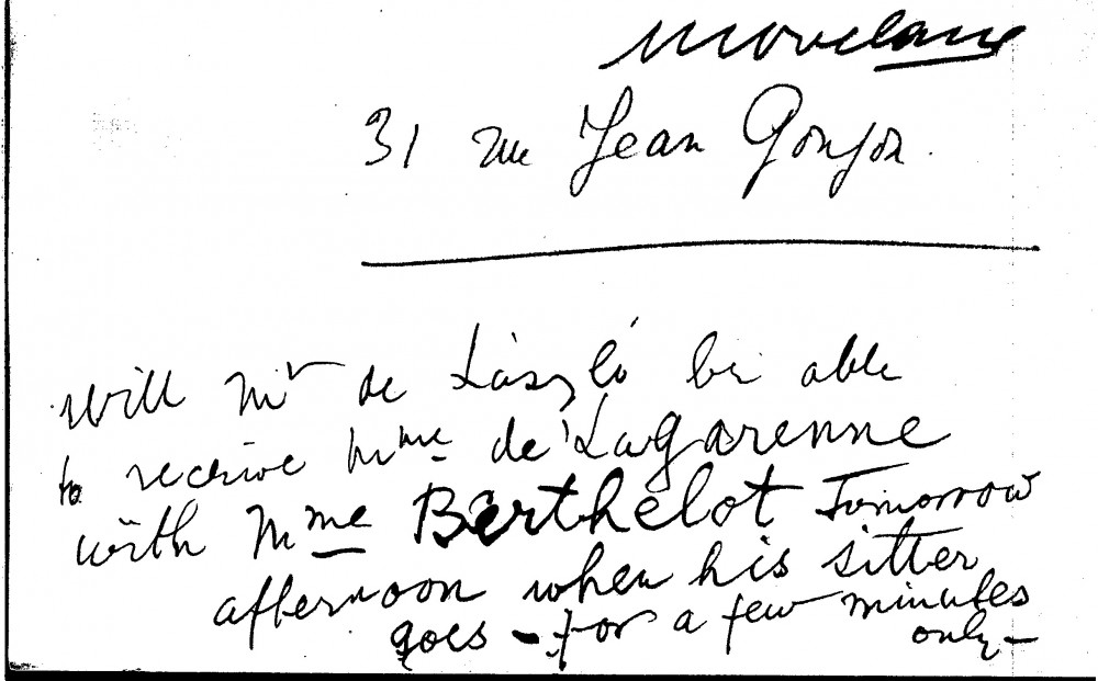 Ferdinande de Lagarenne asks if de László will receive her and Madame Berthelot once his sitter has left