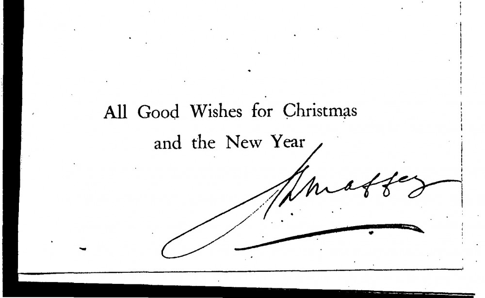 Christmas Card from The Palace Khartoum, signed by John Loader Maffey, 1st Baron Rugby