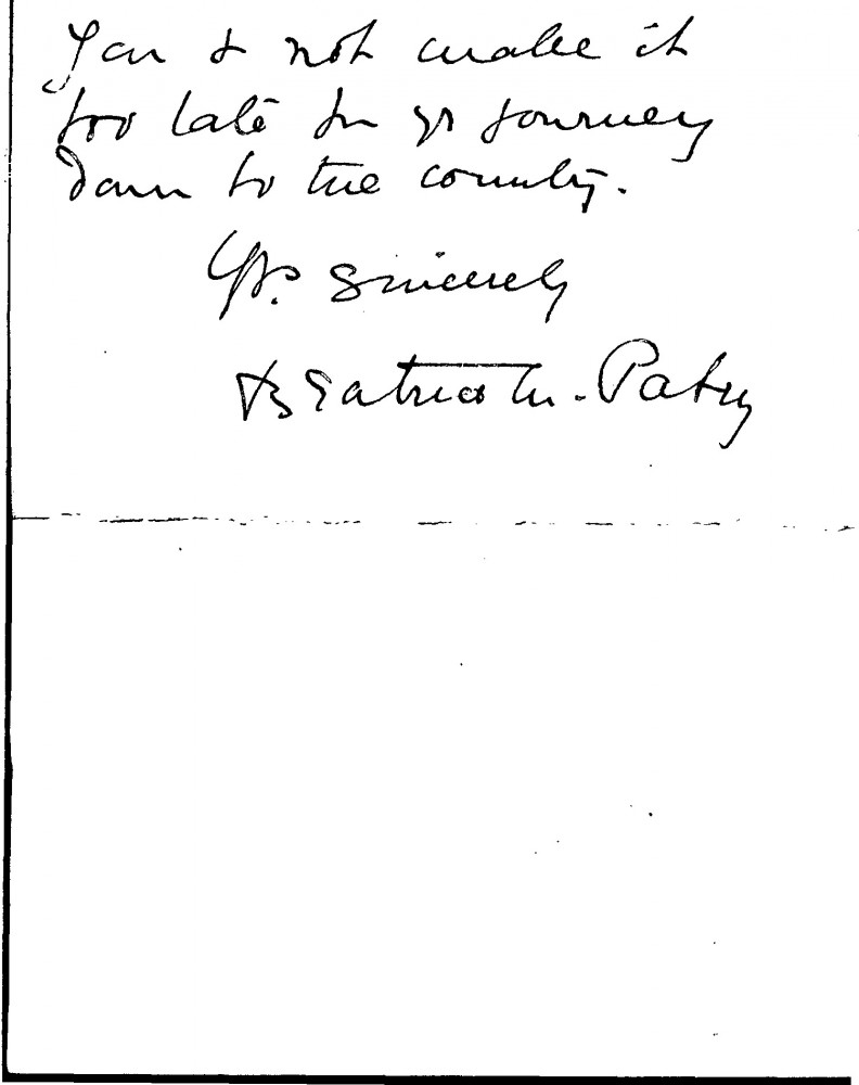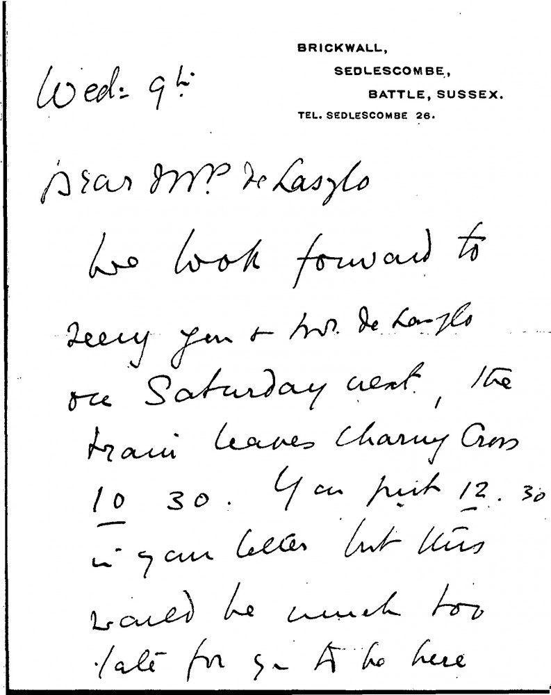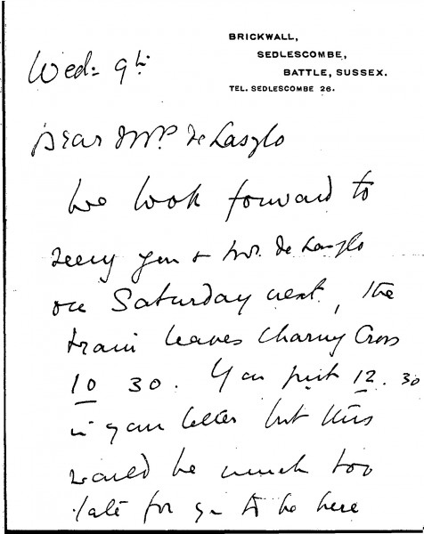 Letter from Beatrice Patry regarding Lucy and de László's trip to the Patry's home for lunch