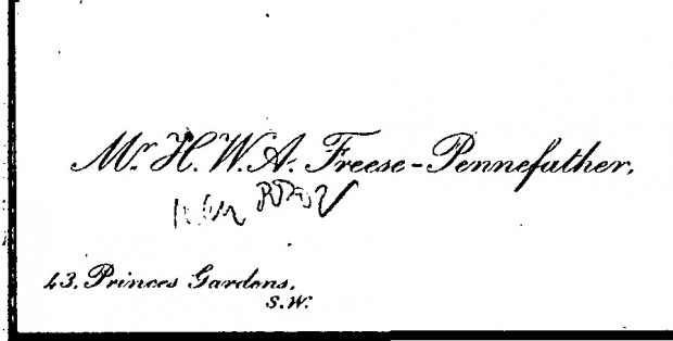 Visit card of Harold Wilfrid Armine Freese-Pennefather