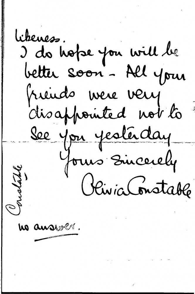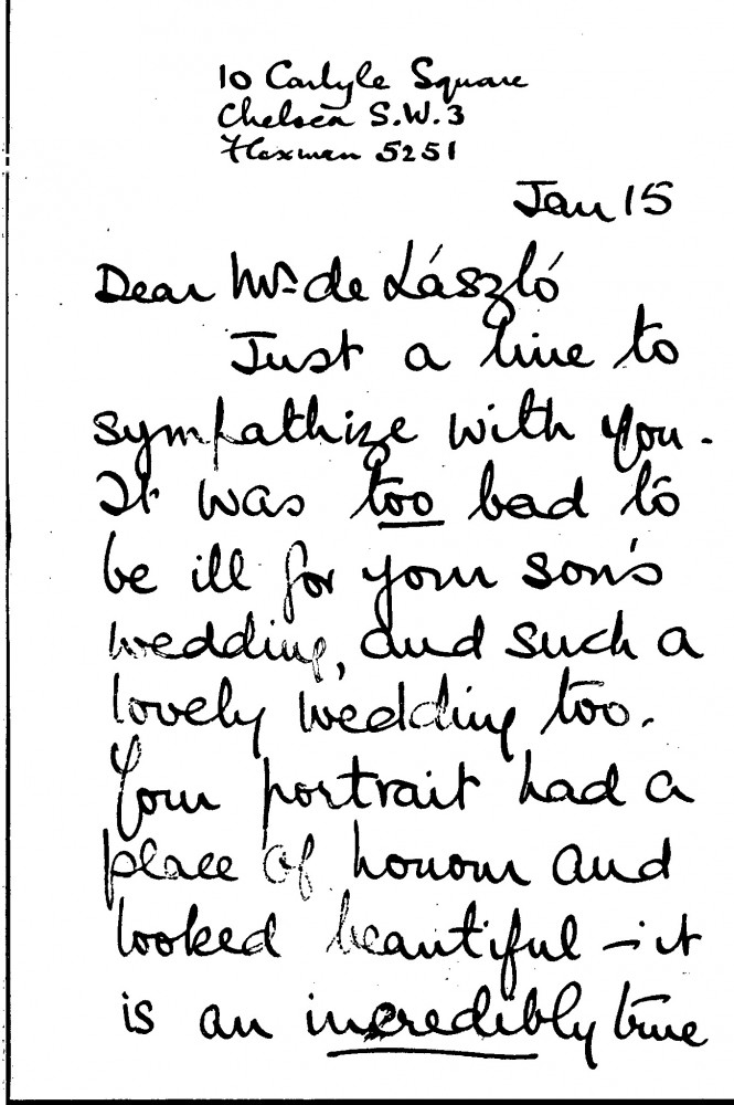 Olivia Constable was sorry that de László was unable to attend his son's wedding (Stephen's) due to illness; de László's portrait had a "place of honour and looked beautiful"