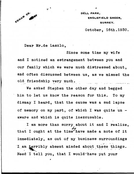 Baron Bruno von Schröder and his wife have been distressed about an estrangement between de László and their family. Stephen has informed them of the cause – some sort of lapse of memory on Schröder's part