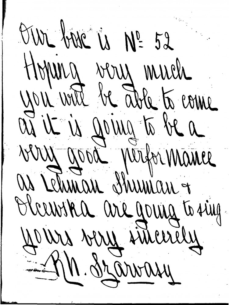 Rhona Szarvasy invites Lucy and de László to see a performance of "Die Fledermaus" on 6th May 1930 (letter is undated)