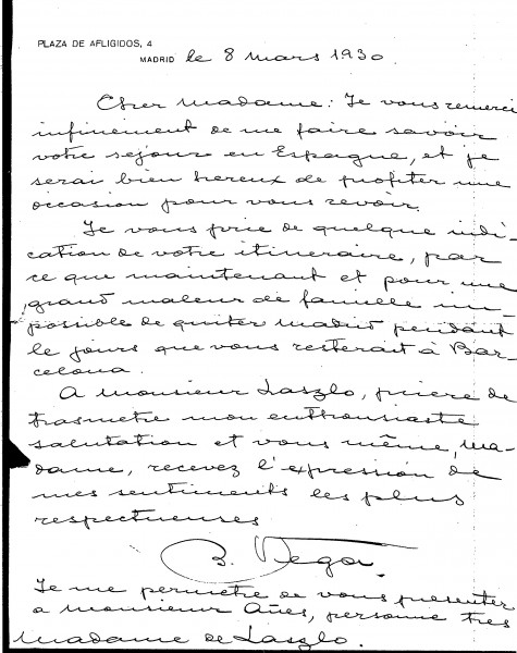 The II marqués de la Vega-Inclán thanks Lucy for informing him of a forthcoming trip to Spain; he introduces her to Mr Aires, who will be helpful in Barcelona