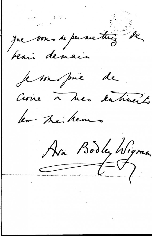 Ava Bodley Wigram (later Viscountess Waverly) sends apologies that she was unable to visit de László due to illness; would like to reschedule