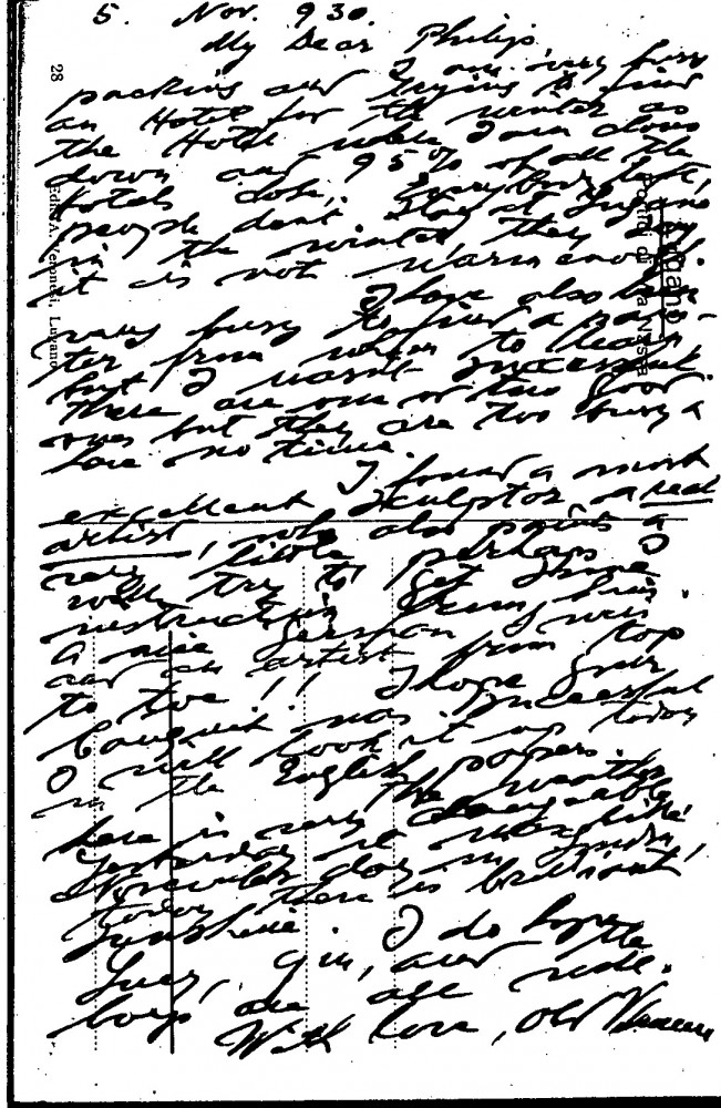 Vilmos Ruttkay de Ruttka writes from Lugano, where much is closing for the winter. He has been unsuccessful in trying to find a painter from whom he can learn