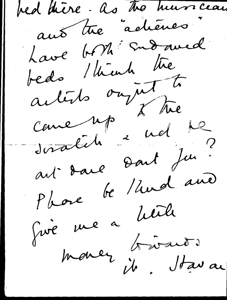 Multiple items. Undated letter from Ruby Peto asking de László if he will donate money to a women's hospital. Musicians and actresses have endowed a bed and the author is collecting money for an artists-endowed bed. Second item is a draft in de László's hand, most of which is illegible. He writes "send £2", presumably in response to Ruby Peto's request for a charitable donation