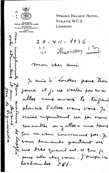 José de Figueiredo informs de László that he is in London, and would like to come and visit him if convenient.