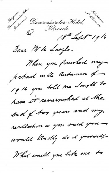 Varnishing of Sir Thomas Gardner Horridge's portrait [5657]. Recently saw the artist's portrait of Mrs George Sandys [11222] at Greythwaite Hall.