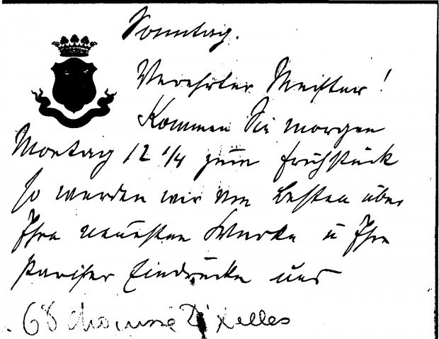 Letter from Count Rudolf Graf von Khevenhüller-Metsch inviting de László to breakfast in order to discuss the artist's latest works and impressions of Paris. He recently saw "May Fürstenberg" (Princess Karl-Emil von Fürstenberg) in Berlin