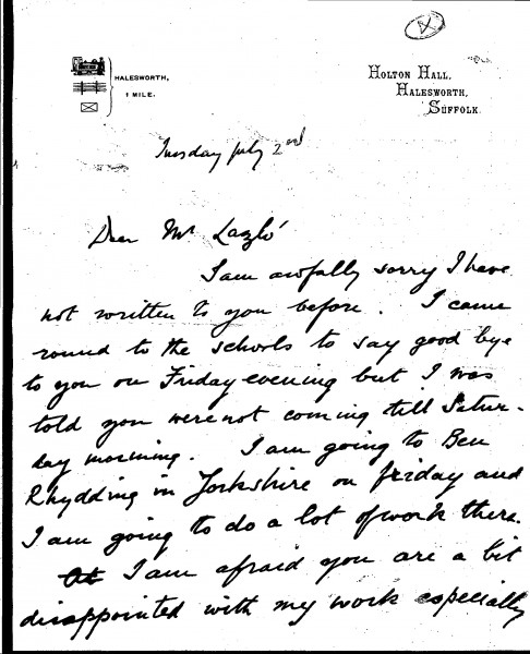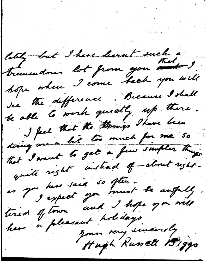 Letter from Hugh Russell Biggs, a student of de László's, in which he thanks the artist for his help. "I have learnt such a tremendous lot from you", writes Russell Biggs
