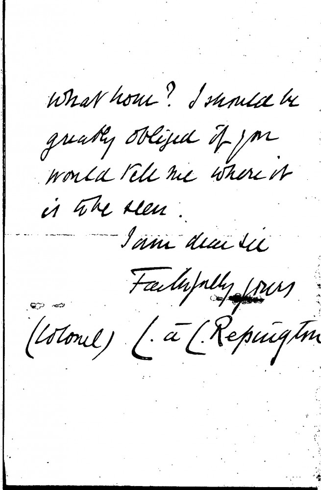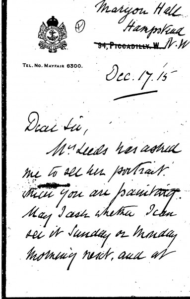 Letter from Lieutenant Colonel Charles à Court Repington to de László asking to view the artist's portrait of Mrs Leeds (later Princess Christopher of Greece) [6021]