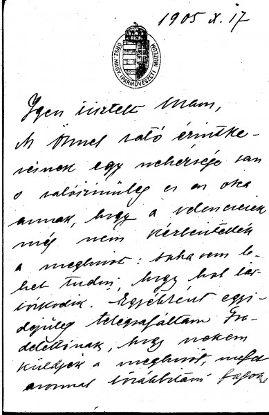 Letter from Jenő Radisics to de László in which Radisics refers to an undelivered invitation from Venice addressed to the artist, and another note that went unreceived. Radisics asks de László to use his influence so that a particular artist [the name is illegible] will receive an award