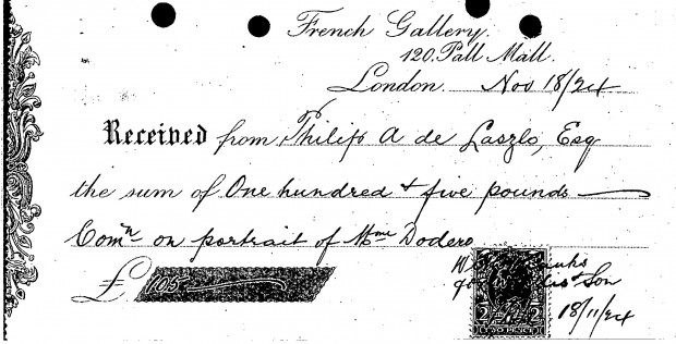 Receipt for commission on the portrait of Mme Dodero [3431] (see DLA107-0218).