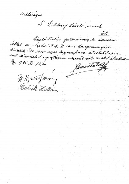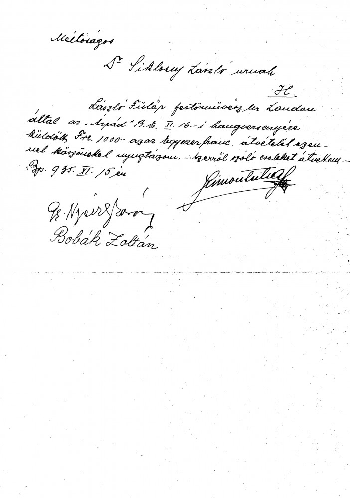 Receipt for 1000 Francs from the "Árpád” Cooperative Society of students in the Royal Hungarian Péter Pázmány University's Faculty of Arts (see related item DLA036-011).